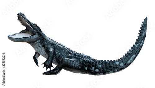 © photosvac, Obraz premium 3D Rendering Black Alligator on White