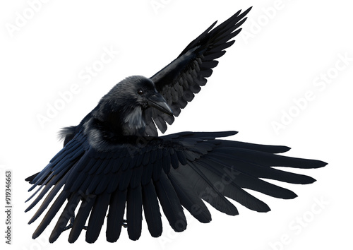 © photosvac, Fototapeta premium 3D Rendering Black Crow on White