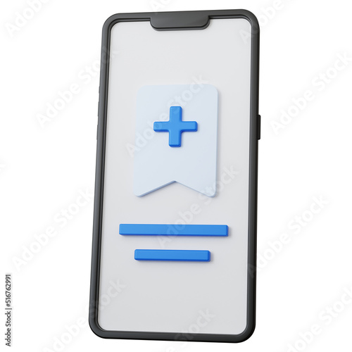 © Aisyah Faiha, Fototapeta premium 3d rendering black smartphone with a blue bookmark icon isolated
