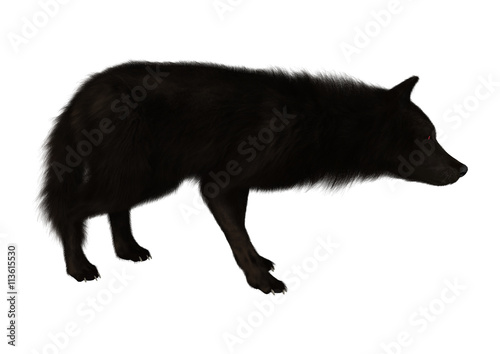 © photosvac, Obraz premium 3D Rendering Black Wolf on White
