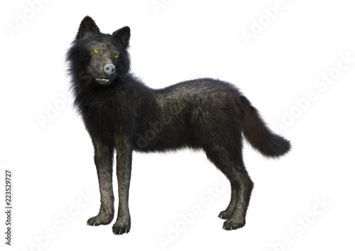 © photosvac, Obraz premium 3D Rendering Black Wolf on White