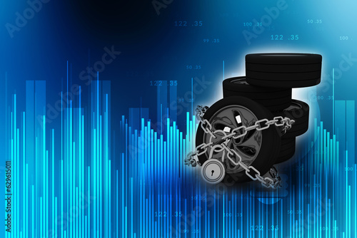 © deepagopi2011, Obraz premium 3d rendering Car wheel protection lock