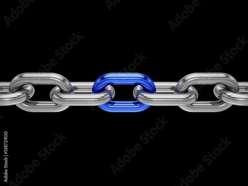 © julien, Obraz premium 3D rendering Chain with blue link on black background