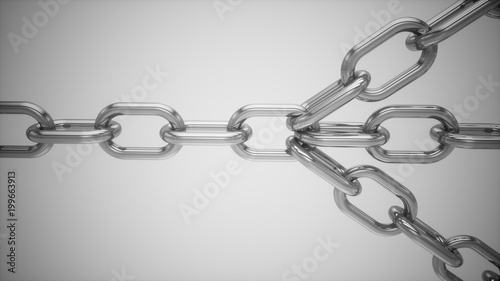 © julien, Obraz premium 3D rendering Chains connected by link. Connected group leadership teamwork concept.