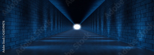 © Archmotion.net, Naklejka premium 3d rendering ciemny tunel z błękitnymi światłami i odbiciem