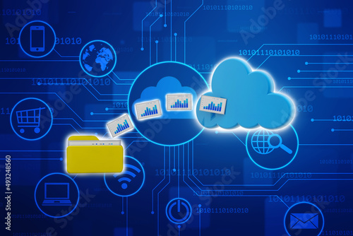 © Greentech, Obraz premium 3d rendering Cloud computing concept, Cloud internet technology concept background, Cloud computing and network data Storage concept