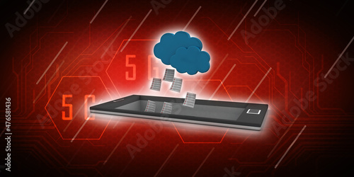 © deepagopi2011, Naklejka premium 3d rendering Cloud online storage icons with mobile