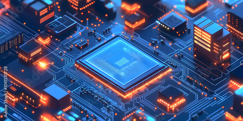 Obraz premium 3D rendering CPU chip, technology concept style CPU circuit integration,...