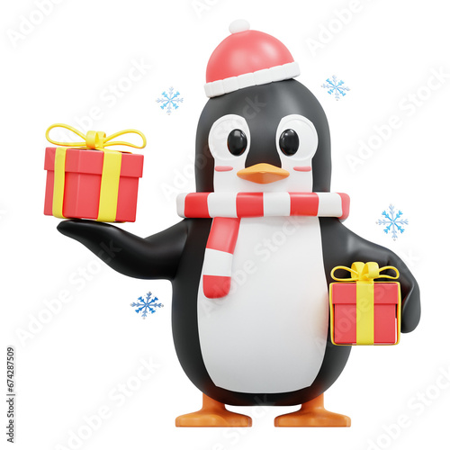 Obraz premium 3d rendering Cute Penguin Character bring some giftboxs
