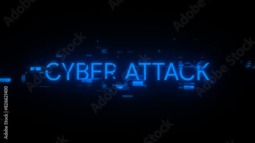 © Vitaly, Obraz premium 3D rendering cyber attack text with screen effects of technological glitches