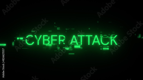 © Vitaly, Obraz premium 3D rendering cyber attack text with screen effects of technological glitches