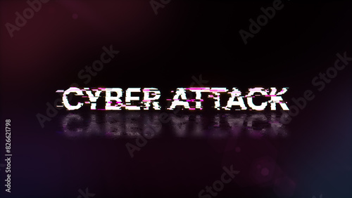 © Vitaly, Obraz premium 3D rendering cyber attack text with screen effects of technological glitches
