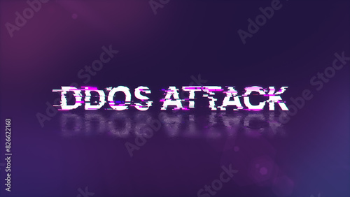 © Vitaly, Obraz premium 3D rendering ddos attack text with screen effects of technological glitches