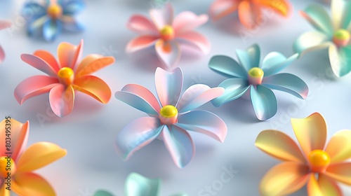 © Vagner Castro, Naklejka premium 3D rendering digital illustration of various flowers on a blurred background. Vibrant flowers of pastel colors in 3D romantic atmosphere.