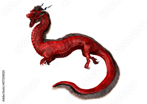 © photosvac, Obraz premium 3D Rendering Eastern Dragon on White