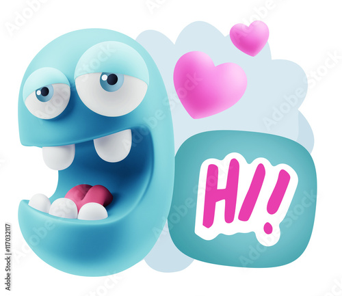 Obraz premium 3d Rendering. Emoticon Face in Love saying Hi with Colorful Spee