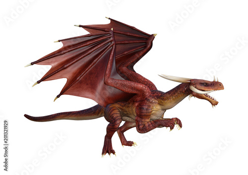 © photosvac, Obraz premium 3D Rendering Fairy Tale Dragon na białym tle