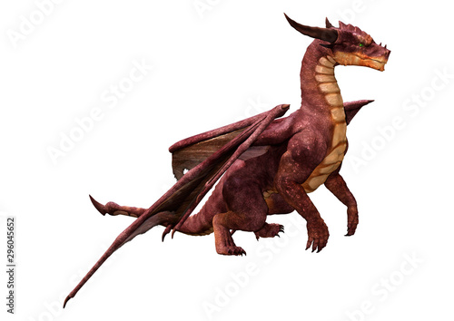 © photosvac, Naklejka premium 3D Rendering Fairy Tale Dragon on White