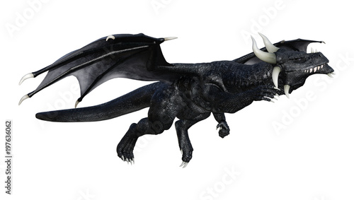© photosvac, Obraz premium 3D Rendering Fantasy Black Dragon on White