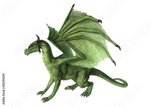 © photosvac, Obraz premium 3D Rendering Fantasy Dragon on White