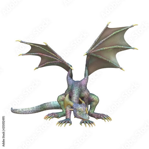 © photosvac, Obraz premium 3D Rendering Fantasy Dragon on White