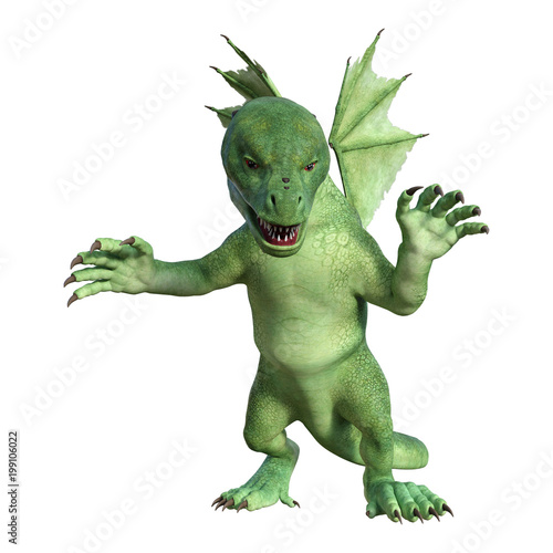 © photosvac, Obraz premium 3D Rendering Fantasy Hatchling Dragon on White