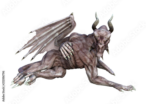 © photosvac, Obraz premium 3D Rendering Fantasy Vampire Dragon on White