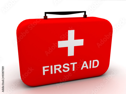 © uthradamgraphics, Obraz premium 3d rendering first aid box with pills