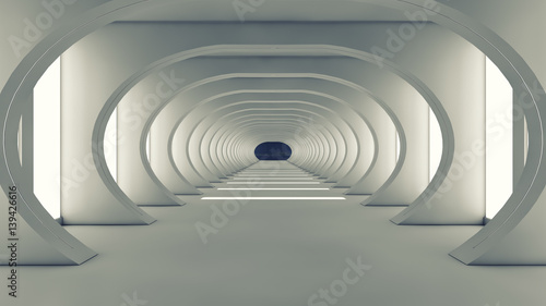 Obraz premium 3D rendering. Futuristic empty interior corridor