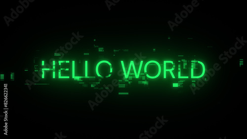© Vitaly, Obraz premium 3D rendering hello world text with screen effects of technological glitches