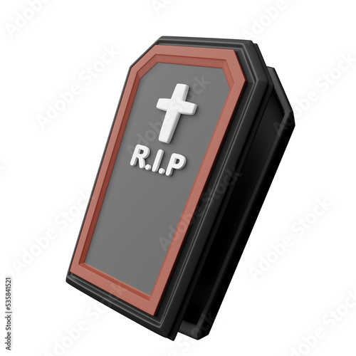 © Cangbacang, Obraz premium 3d rendering illustration black open coffin graveyard decorative ornament halloween design theme icon cartoon style