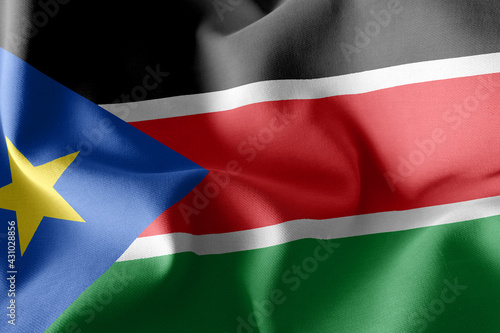 Fototapeta premium 3D rendering illustration flag of South Sudan. Waving on the win