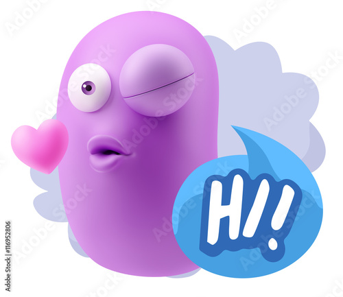 Obraz premium 3d Rendering. Kiss Emoticon Face saying Hi with Colorful Speech