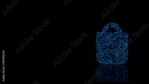 Obraz premium 3d rendering mechanical parts in shape of symbol of bag isolated on black background with floor reflection