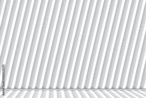 © PATARA, Obraz premium 3d rendering. modern diagonal white panel row wall and floor background.