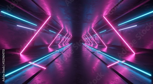 © Joseph, Obraz premium 3d Rendering Neon Tunnel with Glowing Lights and Futuristic Structure