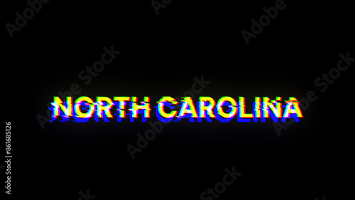 © Vitaly, Fototapeta premium 3D rendering North Carolina text with screen effects of technological glitches