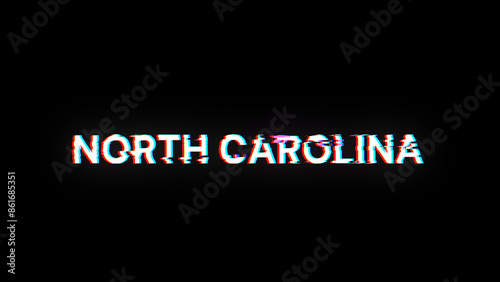 © Vitaly, Fototapeta premium 3D rendering North Carolina text with screen effects of technological glitches