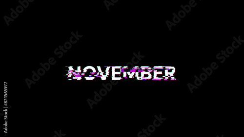 © Vitaly, Fototapeta premium 3D rendering November text with screen effects of technological glitches