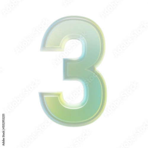 Naklejka premium 3d rendering number three 3 glass transparent gradient green yellow numeral