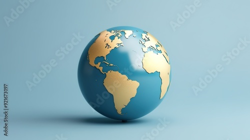 © ma, Fototapeta premium 3D rendering of a blue and gold world globe on a light blue background.