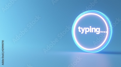 © CYBERPINK, Obraz premium 3d rendering of a blue circle with the word "typing..." written in white capital letters in the center. the circle is glowing with a neon blue light, creating a gradient effect.