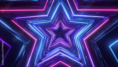 Fototapeta premium 3d rendering of a colorful neon light background with a star-shaped tunnel...