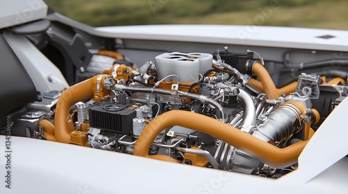 © watchirachat, Fototapeta premium 3D Rendering of a High Performance Fossil Fuel Combustion Engine Highlighting Futuristic Industrial Design and Advanced Energy Efficiency Optimization