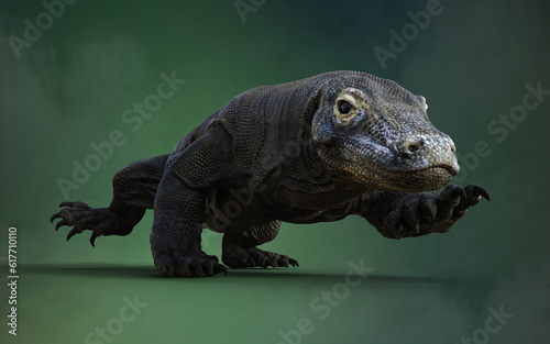 © mrjo_7, Obraz premium 3D rendering of a Komodo Dragon Isolated on Green Background with Clipping Path.
