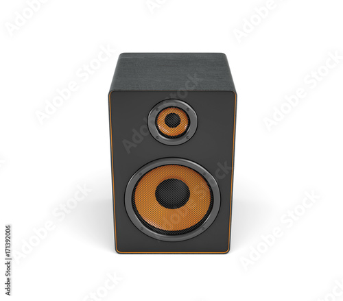 © gearstd, Obraz premium 3d rendering of a large black stereo box with two round speakers on white background.
