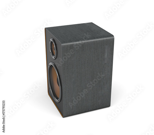 © gearstd, Obraz premium 3d rendering of a large black stereo box with two round speakers on white background.