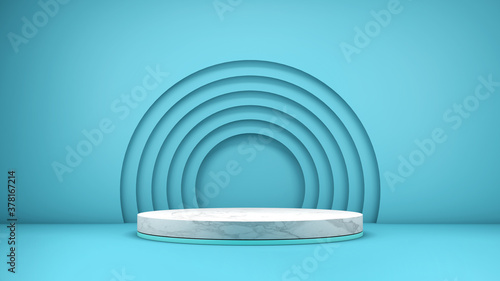 Obraz premium 3D rendering of a marble textured podium on a blue background for product display