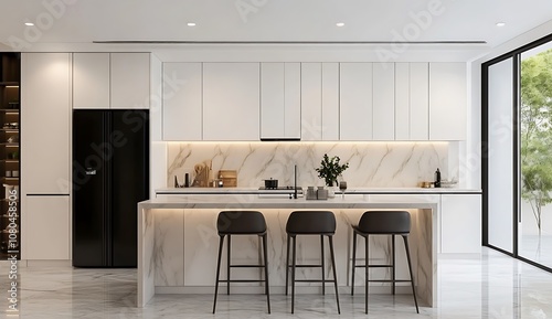 Fototapeta premium 3D Rendering of a Modern White Kitchen Interior with Minimalist Design and...