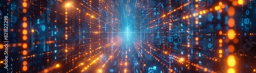 © Антон Сальников, Fototapeta premium 3D rendering of a network of digital binary codes conveying connectivity, complexity, and data flood in the digital age